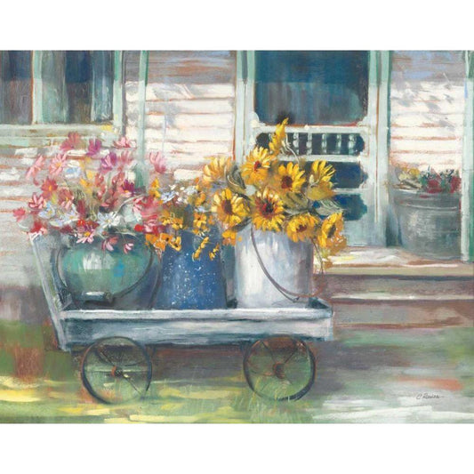 Garden Wagon Bright Black Modern Wood Framed Art Print with Double Matting by Rowan, Carol