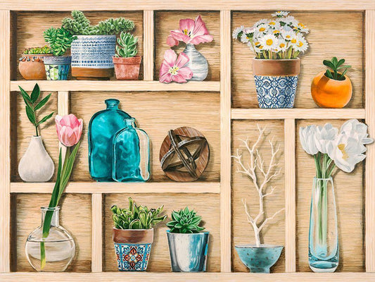 Floral composition with Mason Jars White Modern Wood Framed Art Print with Double Matting by Jenny, Thomlinson