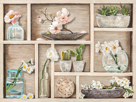 Spring Arrangement II - neutral White Modern Wood Framed Art Print with Double Matting by Thomlinson, Jenny