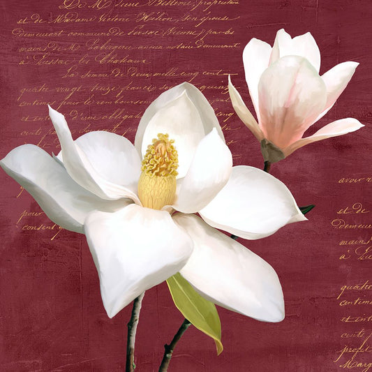 Burgundy Magnolia II White Modern Wood Framed Art Print with Double Matting by Villa, Luca