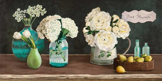 Petit Fleuriste White Modern Wood Framed Art Print with Double Matting by Benson, Pierre