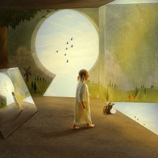 Over The Hills White Modern Wood Framed Art Print with Double Matting by Longobardi, Antonio