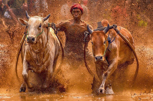 Farm Life White Modern Wood Framed Art Print with Double Matting by Flour, Piet