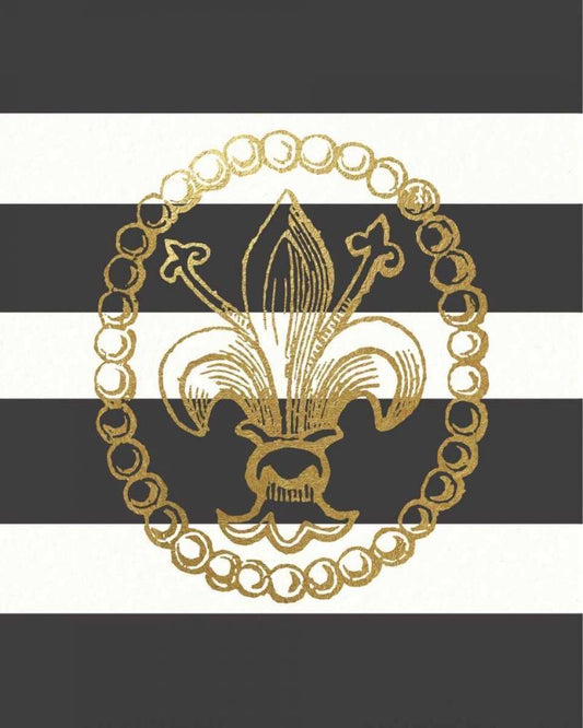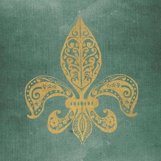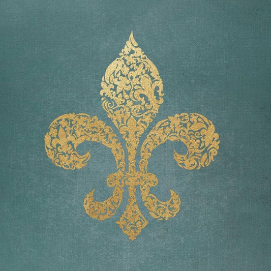 Gold Fleur de Lis Worn Canvas White Modern Wood Framed Art Print with Double Matting by Moulton, Jo