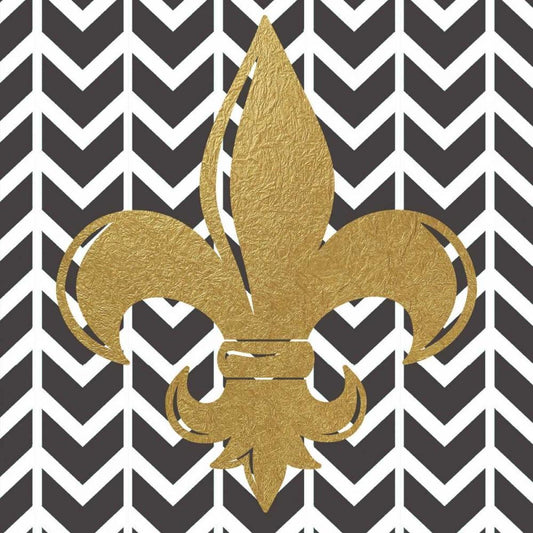 Fleur de Lis Herringbone White Modern Wood Framed Art Print with Double Matting by Moulton, Jo