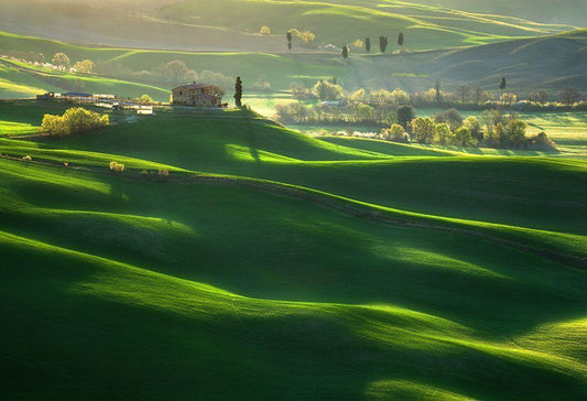 Val DA#039;Orcia White Modern Wood Framed Art Print with Double Matting by Schumacher, Nicolas