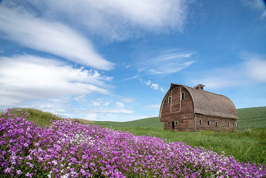 Palouse Barn and Flowers II White Modern Wood Framed Art Print with Double Matting by Drost, David