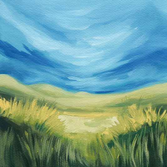 Across the Green Hills White Modern Wood Framed Art Print with Double Matting by Gordon, Sharon