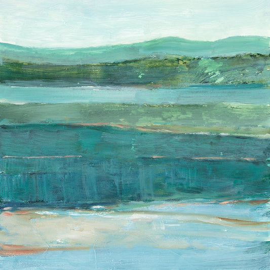 Folk Hills II White Modern Wood Framed Art Print with Double Matting by Green, Jacob