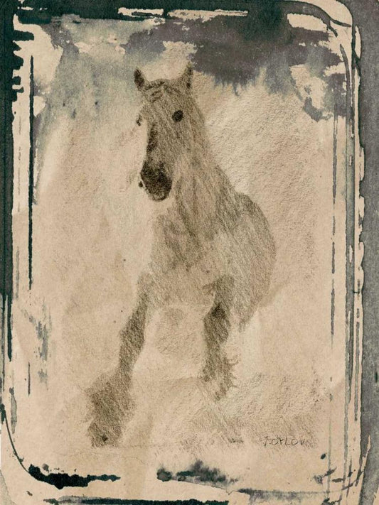 Running Horse II White Modern Wood Framed Art Print with Double Matting by Orlov, Irena