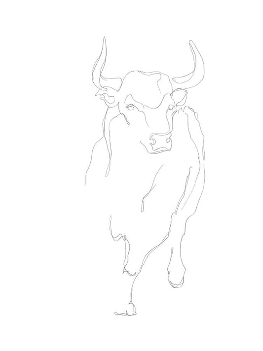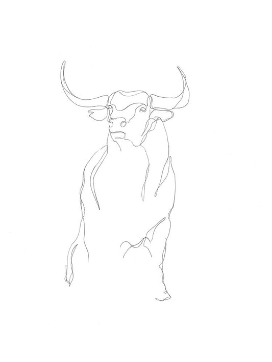 Bull Contour I White Modern Wood Framed Art Print with Double Matting by Harper, Ethan