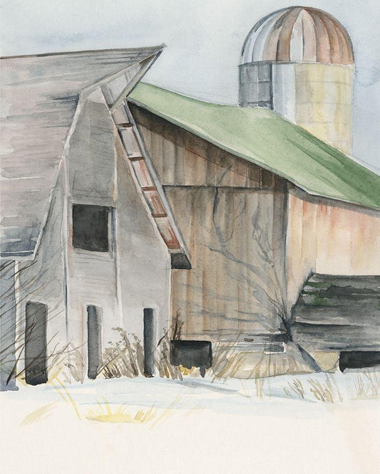 3-UP Winter Barn I White Modern Wood Framed Art Print with Double Matting by Parker, Jennifer Paxton