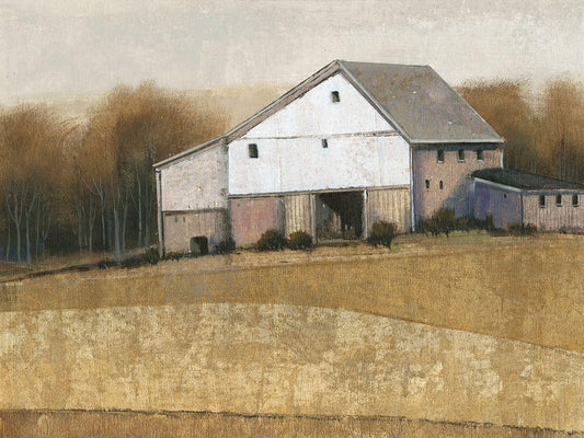 White Barn View I White Modern Wood Framed Art Print with Double Matting by OToole, Tim