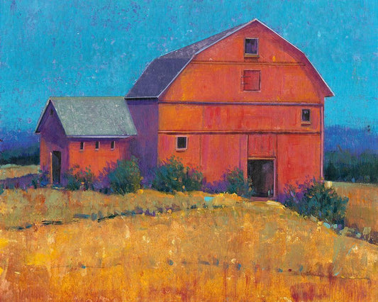 Colorful Barn View I White Modern Wood Framed Art Print with Double Matting by OToole, Tim