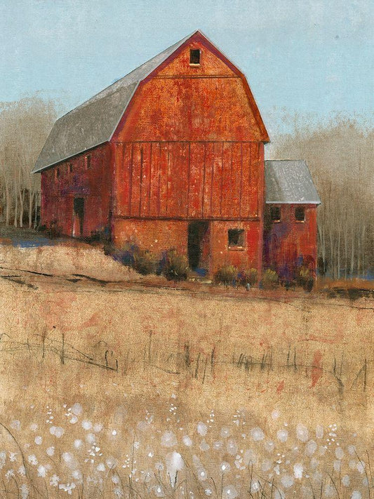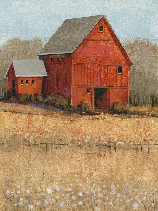Red Barn View I White Modern Wood Framed Art Print with Double Matting by OToole, Tim