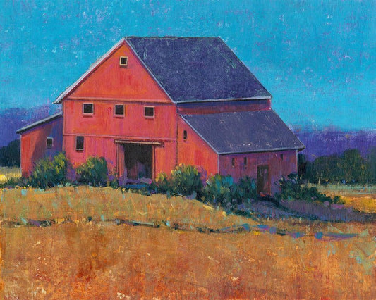 Colorful Barn View II White Modern Wood Framed Art Print with Double Matting by OToole, Tim