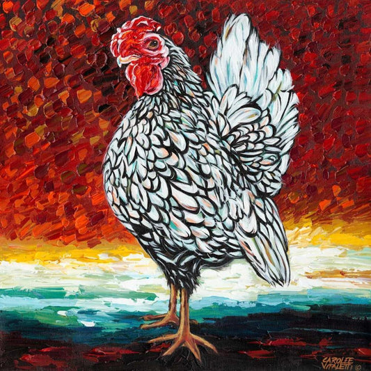 Fancy Chicken II White Modern Wood Framed Art Print with Double Matting by Vitaletti, Carolee