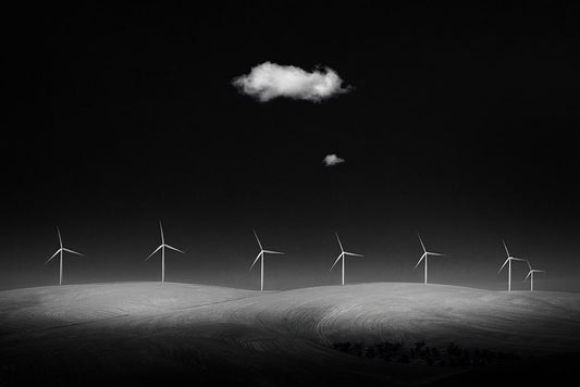 Windmills White Modern Wood Framed Art Print with Double Matting by Xu, Tony