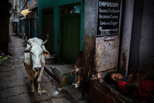 A Scene Of Life In A Mundari Cattle Camp - South Sudan White Modern Wood Framed Art Print with Double Matting by Inazio Kuesta, Joxe