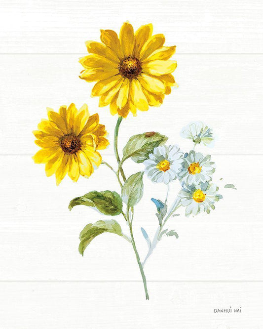 Bees and Blooms Flowers V White Modern Wood Framed Art Print with Double Matting by Nai, Danhui