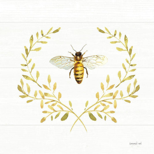 Bees and Blooms Bee Laurel White Modern Wood Framed Art Print with Double Matting by Nai, Danhui