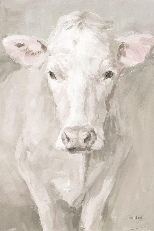 Flossie Neutral White Modern Wood Framed Art Print with Double Matting by Nai, Danhui