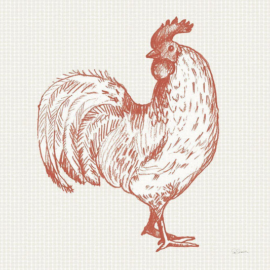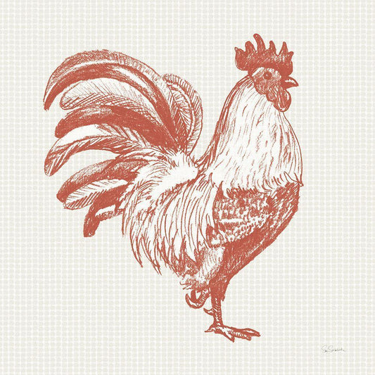 Cottage Rooster II Red White Modern Wood Framed Art Print with Double Matting by Schlabach, Sue