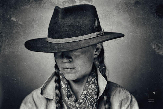 Home on the Range Cowgirl I White Modern Wood Framed Art Print with Double Matting by Larson, Nathan