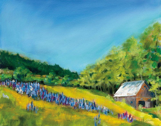 Field of Lupine White Modern Wood Framed Art Print with Double Matting by Schlabach, Sue