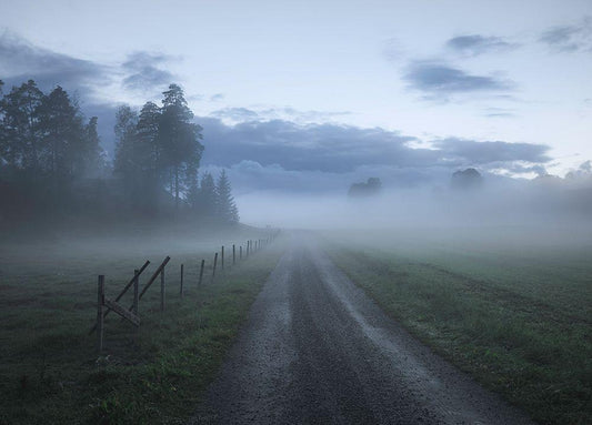 Moody Road White Modern Wood Framed Art Print with Double Matting by Lindsten, Christian