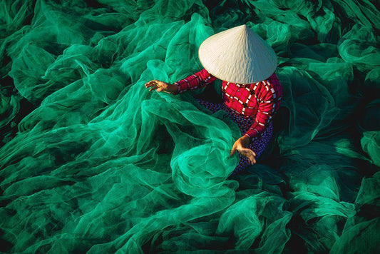 The Fishing Net White Modern Wood Framed Art Print with Double Matting by Foto, Patrick
