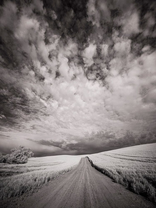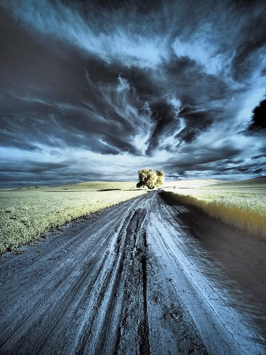 USA-Washington State-Palouse Infrared of lone tree along side country road White Modern Wood Framed Art Print with Double Matting by Eggers, Terry