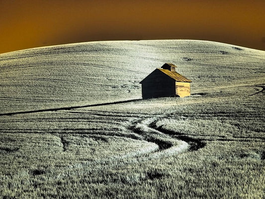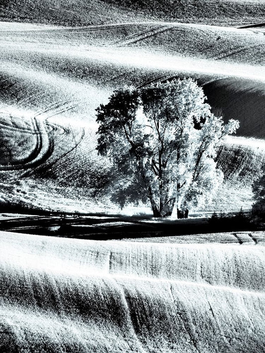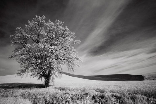 USA-Palouse Country-Washington State-Infrared Palouse fields and lone tree White Modern Wood Framed Art Print with Double Matting by Eggers, Terry