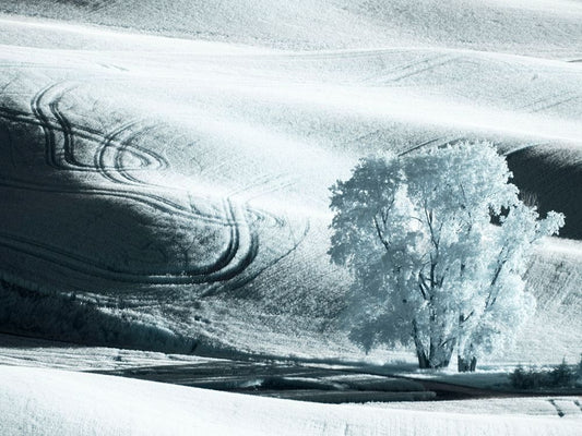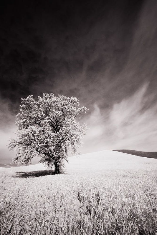 USA-Palouse Country-Infrared Palouse fields and lone tree White Modern Wood Framed Art Print with Double Matting by Eggers, Terry