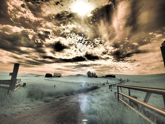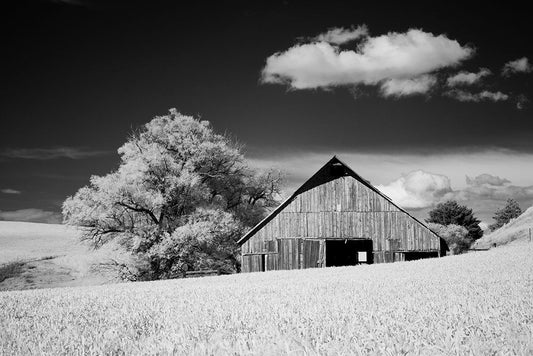 USA-Palouse Country-Washington State-Infrared Palouse fields and barn White Modern Wood Framed Art Print with Double Matting by Eggers, Terry