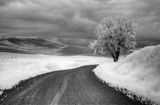 USA-Infrared Palouse fields-Backroad and Tree White Modern Wood Framed Art Print with Double Matting by Eggers, Terry
