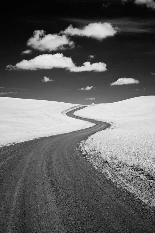 USA-Palouse Country-Washington State-Infrared Palouse fields and backroad White Modern Wood Framed Art Print with Double Matting by Eggers, Terry