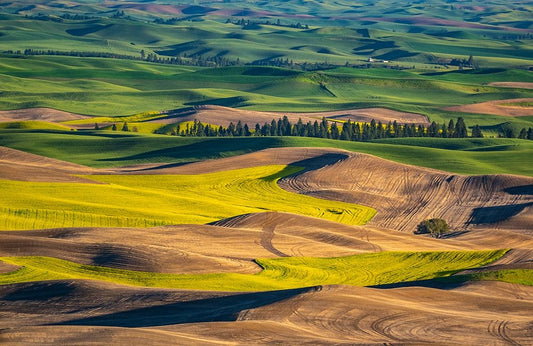 USA-Washington State-Palouse and Steptoe Butte State Park view of Wheat and Canola White Modern Wood Framed Art Print with Double Matting by Gulin, Sylvia