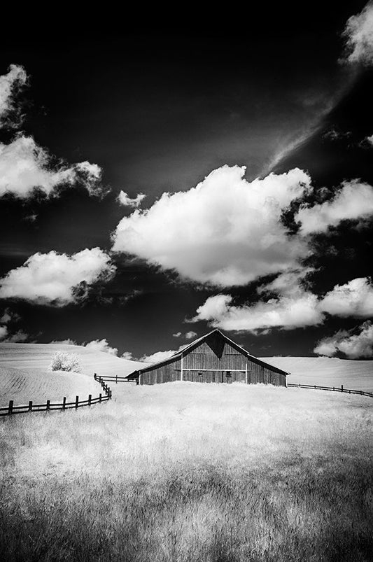USA-Palouse Country-Washington State-Infrared Palouse fields and barn White Modern Wood Framed Art Print with Double Matting by Eggers, Terry