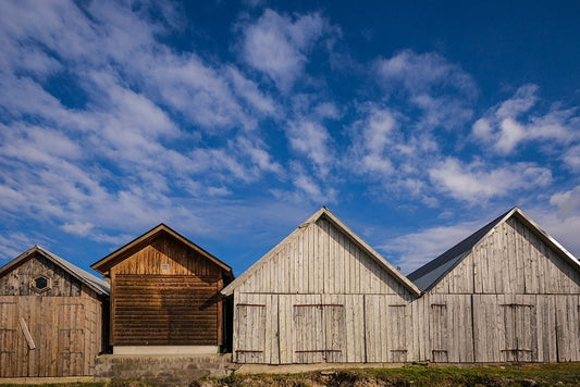 Sweden-Gotland Island-Djupvik-fishing shacks White Modern Wood Framed Art Print with Double Matting by Bibikow, Walter