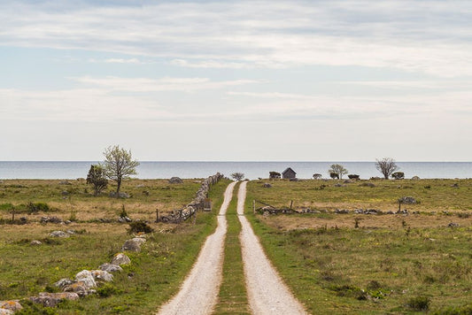 Sweden-Gotland Island-Sundre-country road-southern Gotland White Modern Wood Framed Art Print with Double Matting by Bibikow, Walter