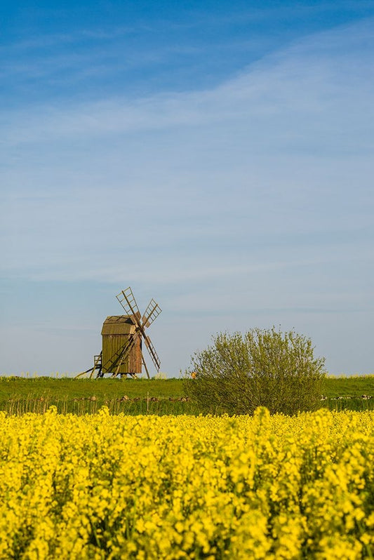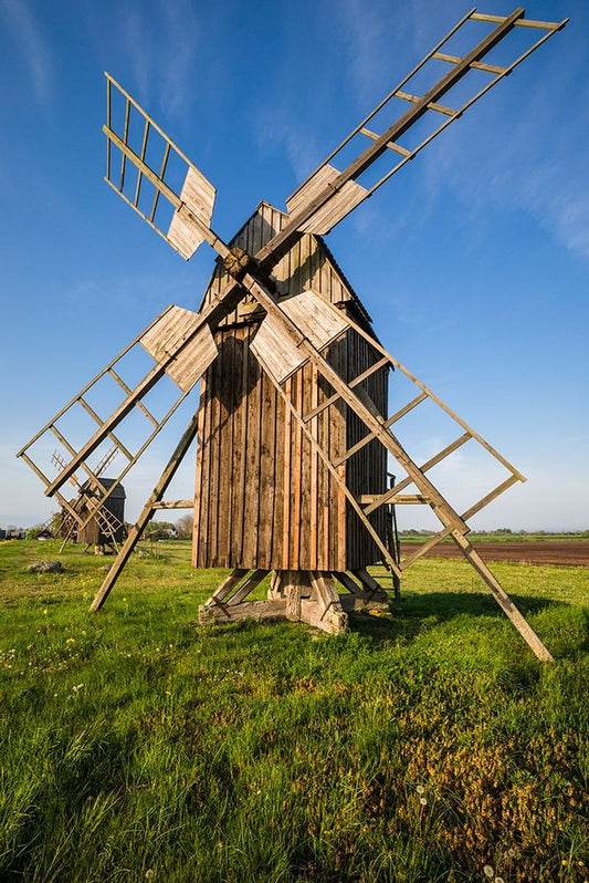 Sweden-Oland Island-Strandskogen-antique wooden windmill White Modern Wood Framed Art Print with Double Matting by Bibikow, Walter