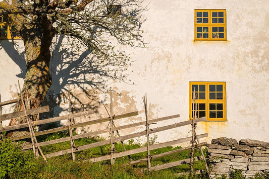 Sweden-Gotland Island-Fleringe-exterior farm White Modern Wood Framed Art Print with Double Matting by Bibikow, Walter