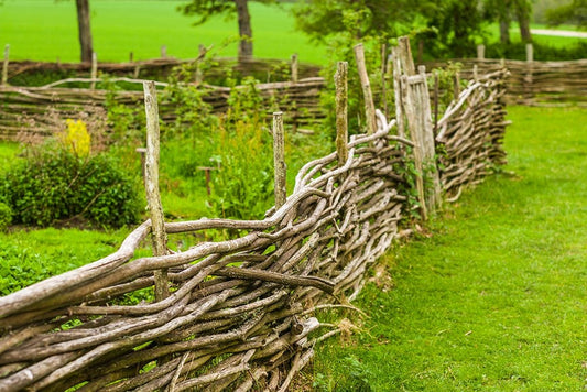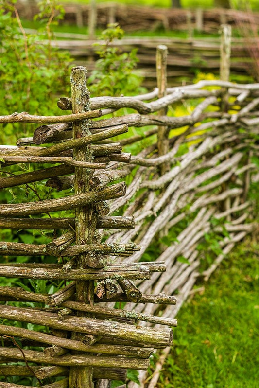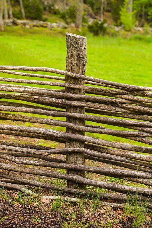Sweden-Bohuslan-Tanumshede-traditional architecture-wood fence White Modern Wood Framed Art Print with Double Matting by Bibikow, Walter