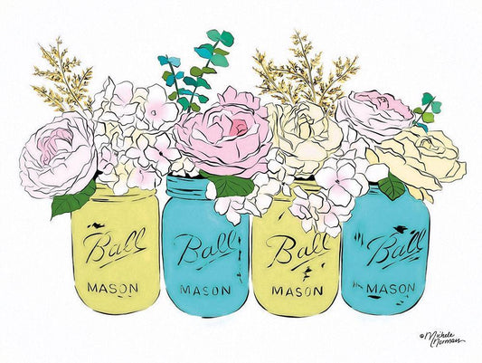 Floral Canning Jars White Modern Wood Framed Art Print with Double Matting by Norman, Michele