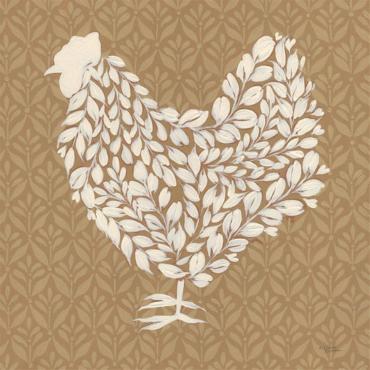 Botanical Rooster White Modern Wood Framed Art Print with Double Matting by Norman, Michele