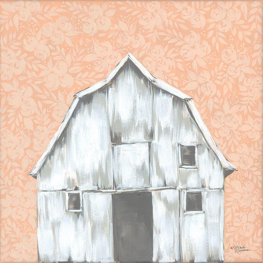 Peaches And Cream Barn White Modern Wood Framed Art Print with Double Matting by Norman, Michele