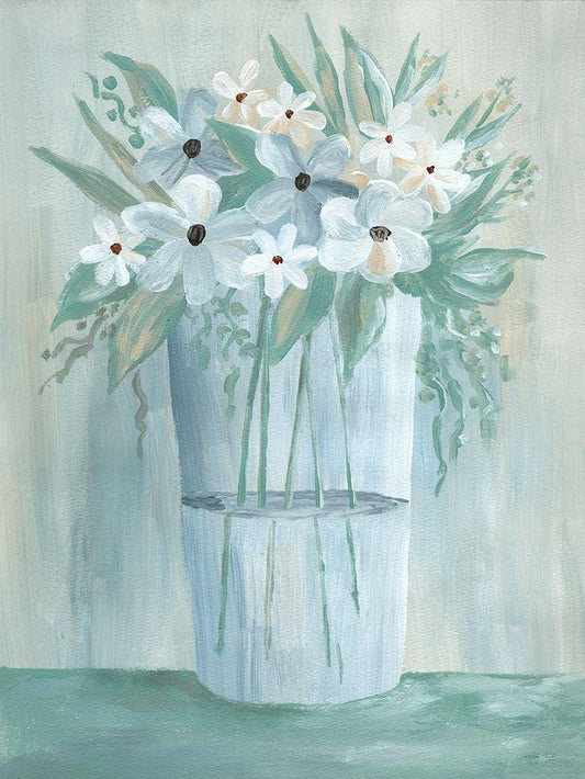 Farmhouse Flowers I White Modern Wood Framed Art Print with Double Matting by Jacobs, Cindy