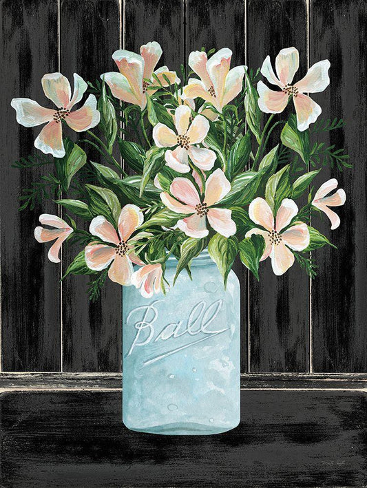 Farmhouse Flowers II White Modern Wood Framed Art Print with Double Matting by Jacobs, Cindy