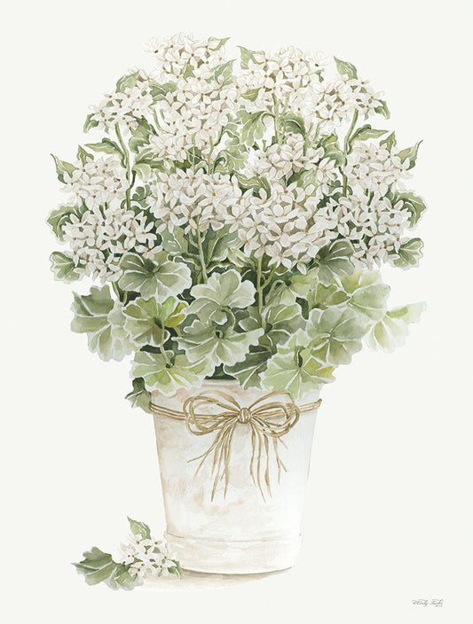 White Geraniums I White Modern Wood Framed Art Print with Double Matting by Jacobs, Cindy
